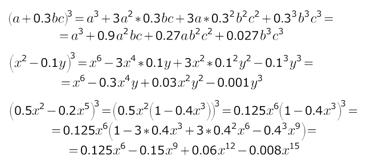 по формуле... куб суммы=куб первого слагаемого+ утроенное произведение квадрата первого на второй...
