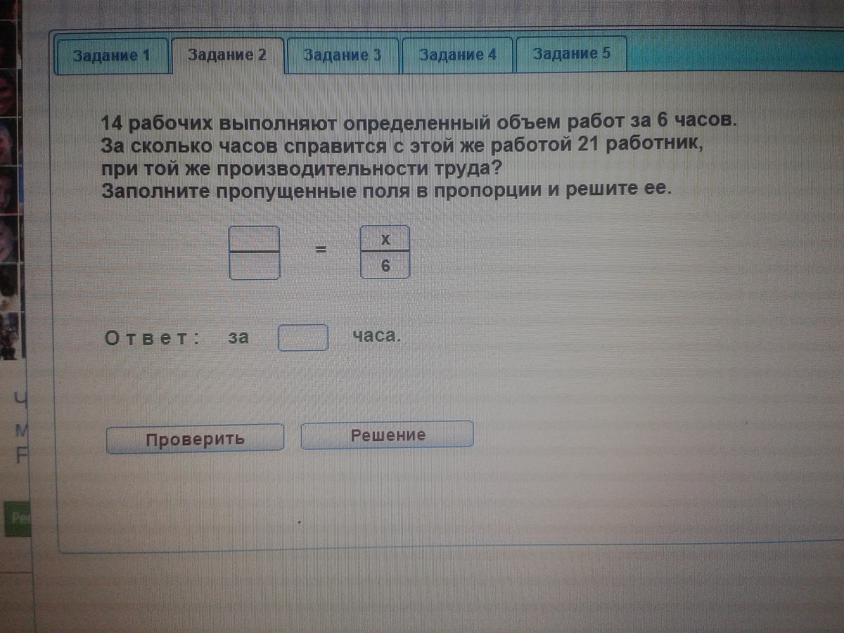 frac{14}{21} = frac{x}{6}, \ x = frac{14cdot6}{21}, \ x=4.