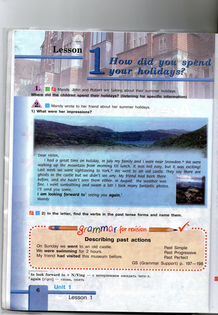 Past Simple: had, were ( I were near Snowdon) , was ( was not easy, it was exciting, the weather was fine) , went, didn't see, swam, took.