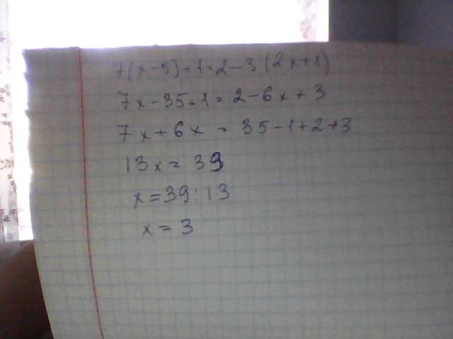 7(x-5)+1=2-3(2x-1)
