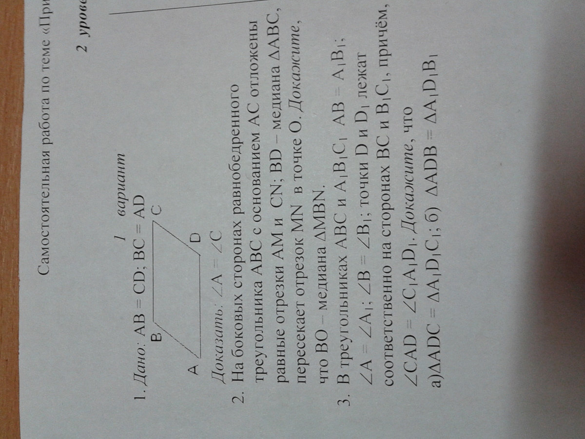 4) п.3 => из равенства треугольников следует, что AD=A1D1