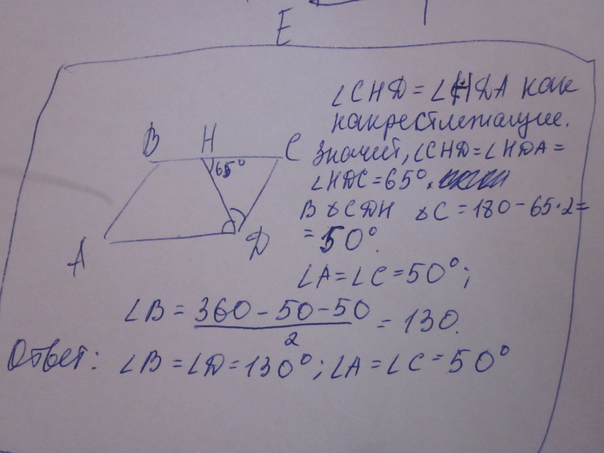 найдите величины углов параллелограмма если биссектриса угла D образует со стороной BC угол равный 65
