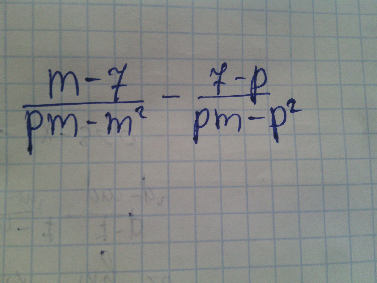 (m-7)/(pm -m²) - (7-p)/(pm -p²) =(m-7)/(pm -m²) - (p-7)/(p² -pm) =