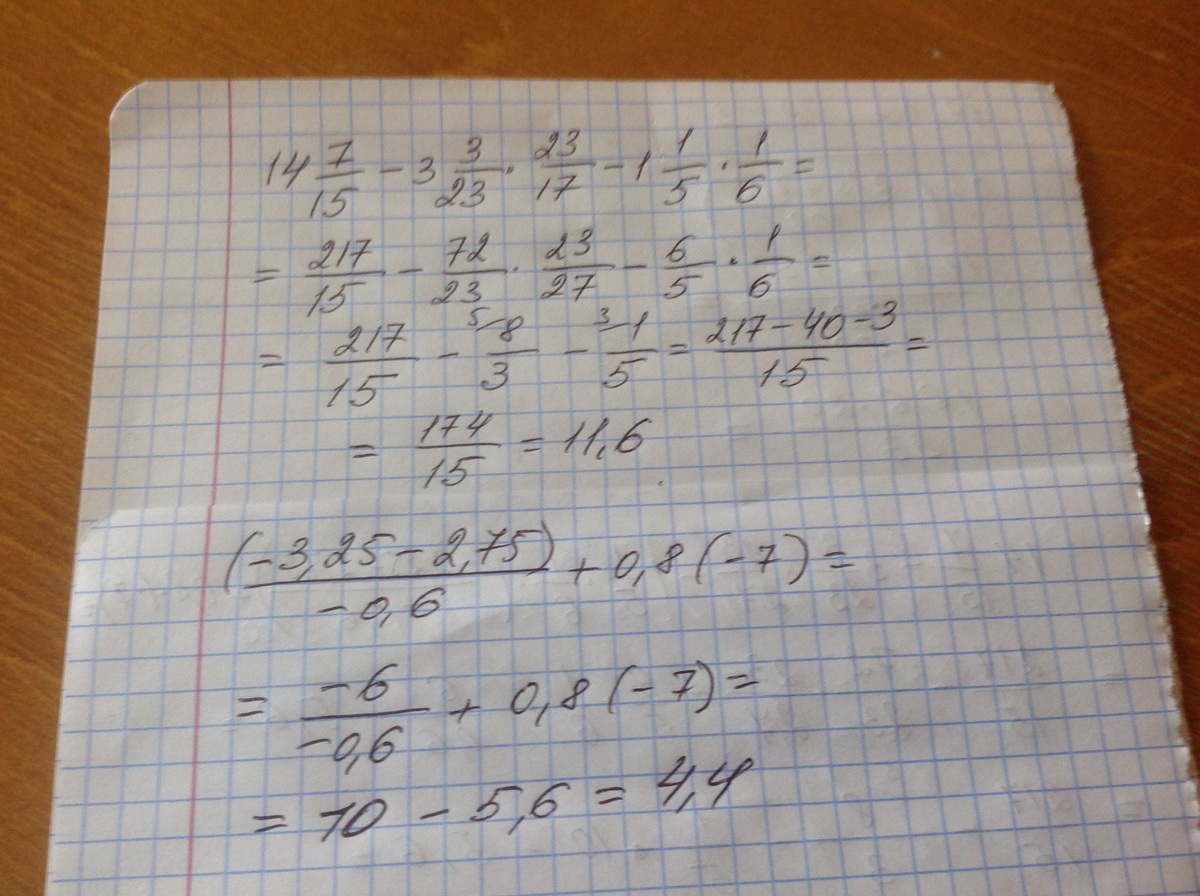 14 7/15- 3 3/23*23/27-1 1/5*1/6