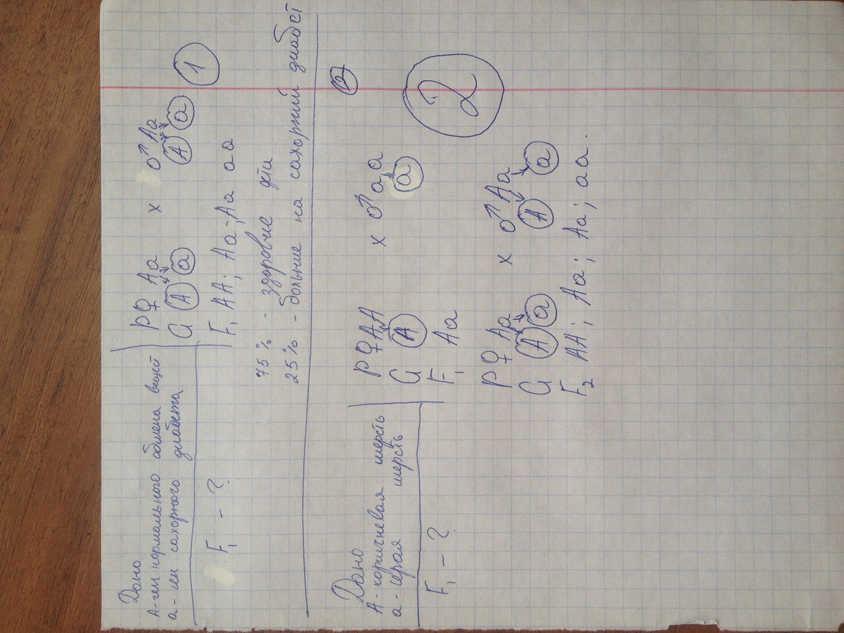 1. У человека нормальный обмен углеводов определяется доминантным геном, a рецессивный аллель отвественен за развитие сахарного диабета. Дочь здоровых родителей больна сахарным диабетом. Определить может ли в этой семье родится здоровый ребенок. И какова вероятность.