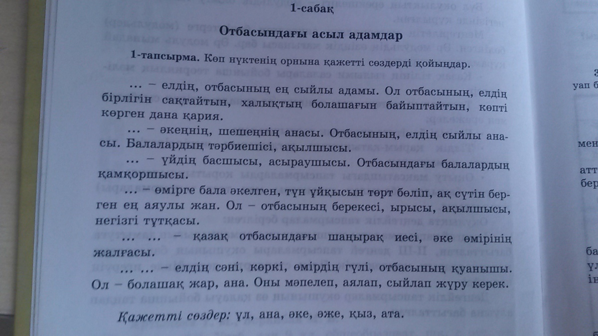 1 ата, 2 əже, 3 əке, 4 ұл, 5 қыз