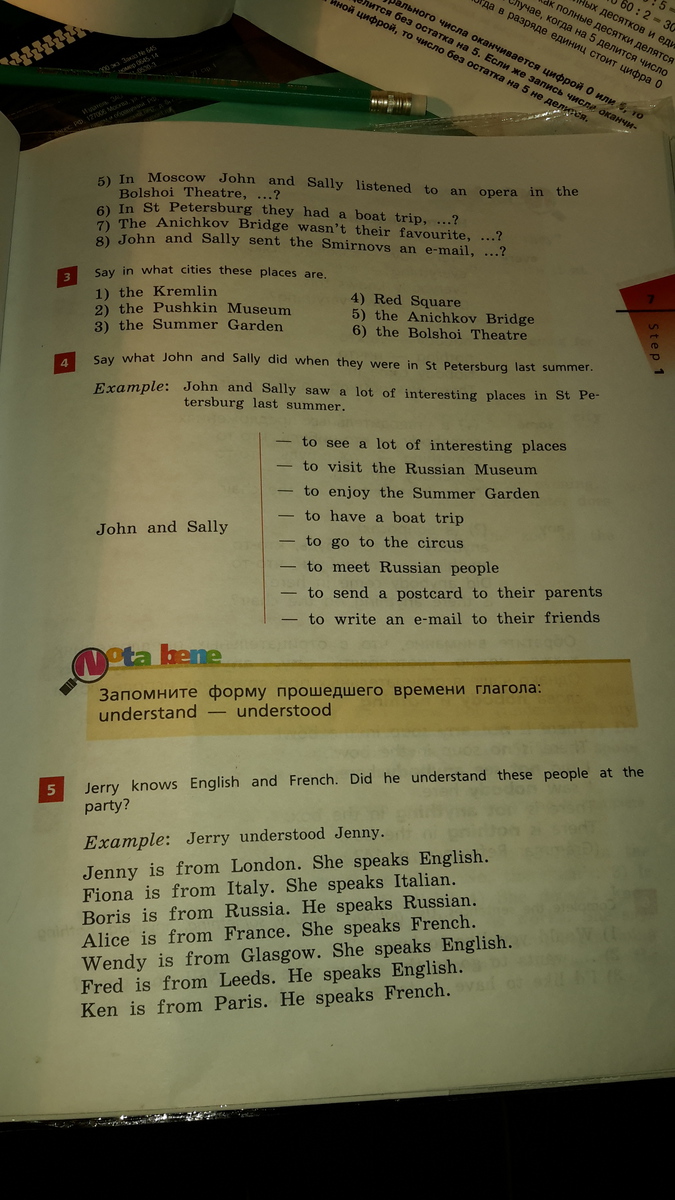4.Скажи что делали Джон и Салли когда они были в Питере прошлым летом.