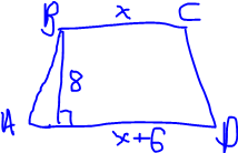 площадь прямоугольной трапеции равна 120 см2 а её высота равна 8 см .Найдите все стороны трапеции если одно из оснований больше другого на 6 см