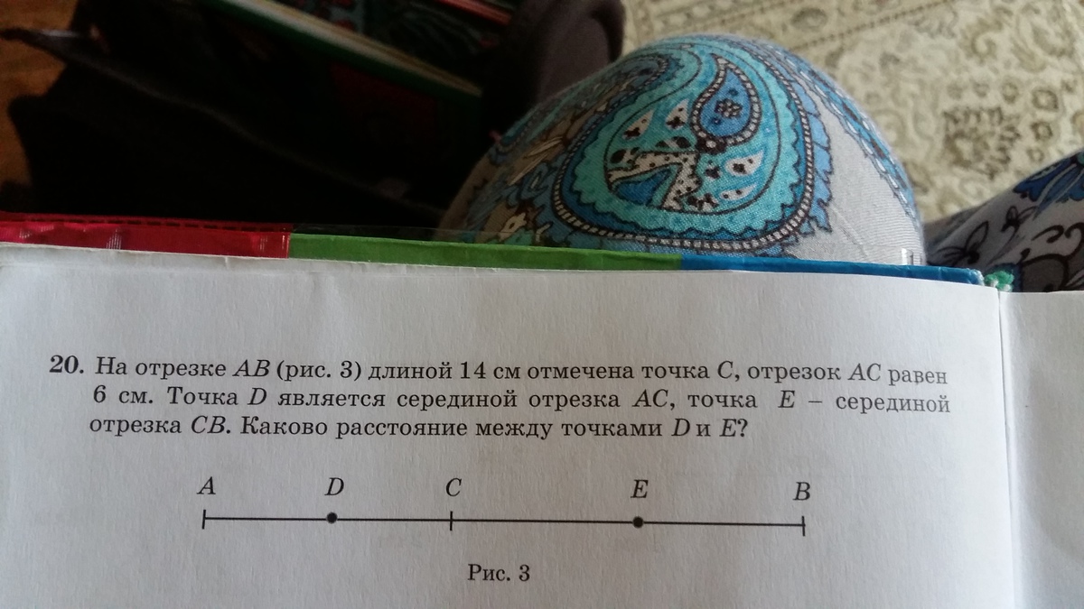 AB = 14 см, AC = 6 см, CB = 14 - 6 = 8 см.