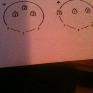 на одном участке расположены три домика а в ограде сделаны три калитки проложите от каждой калитки дорожку к домику с тем же номером таак чтобы дорожки не пересекались