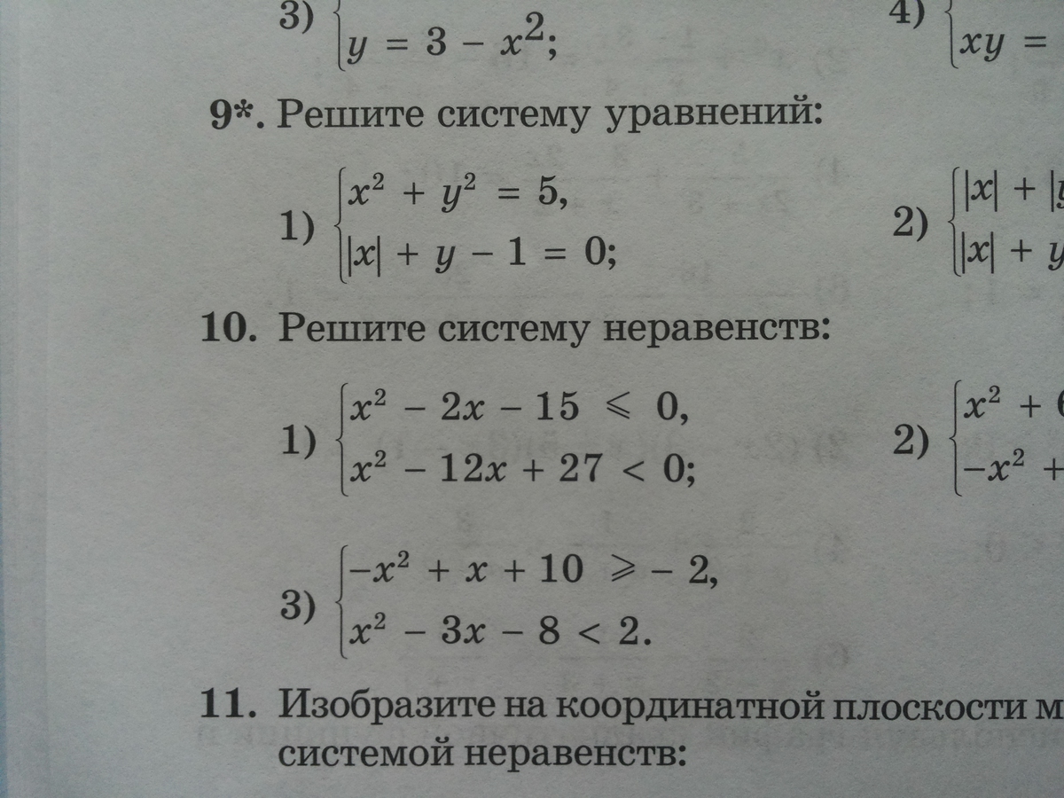 Номер 8 (1.3) графическим способом решите систему уравнений. Номер 10 (1) решите систему неравенств. Сделайте пожалуйста любое из этих задач!!!! Заранее Спасибо!!!