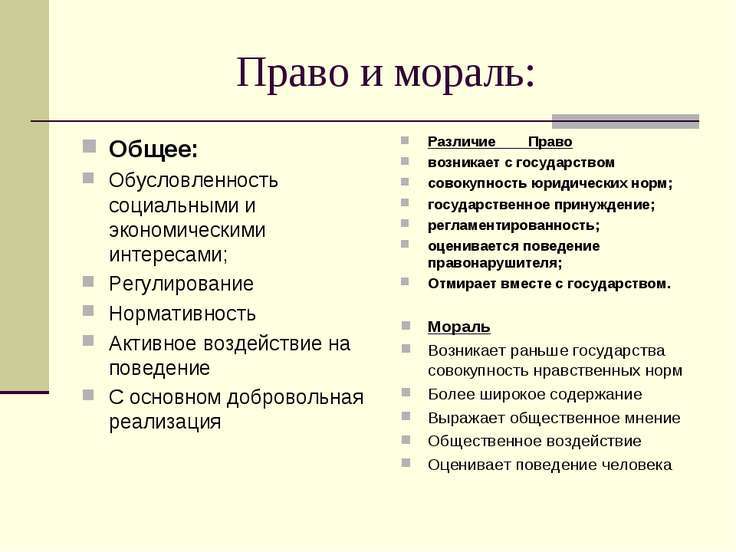 Таблица на тему сравнения морали и права приклеплена внизу