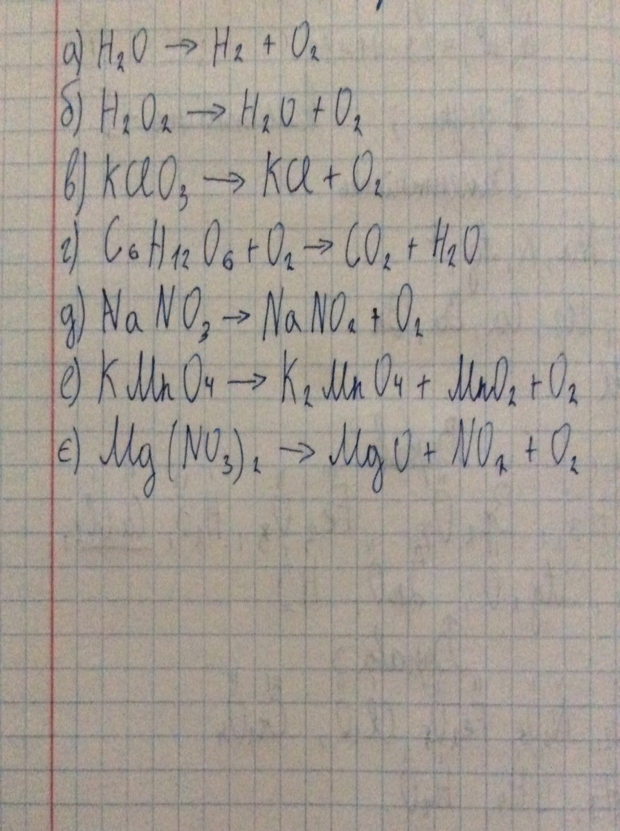 б) 2H₂O₂→2H₂O+O₂