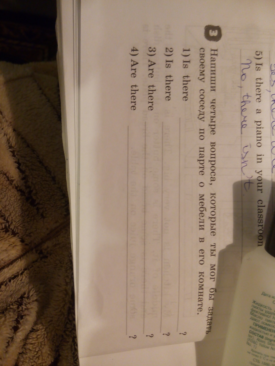 здесь единственное число (первые два предложения) и два предложения последних множественной число. Можно спросить есть ли стулья. Стулья - chairs. Или столы - tables. А первые предложения про кровать - bed, и кресло - armchair. и не забывать артикль. Это артикль a. Только на слово кресло an. Потому что оно начинается с гласной.