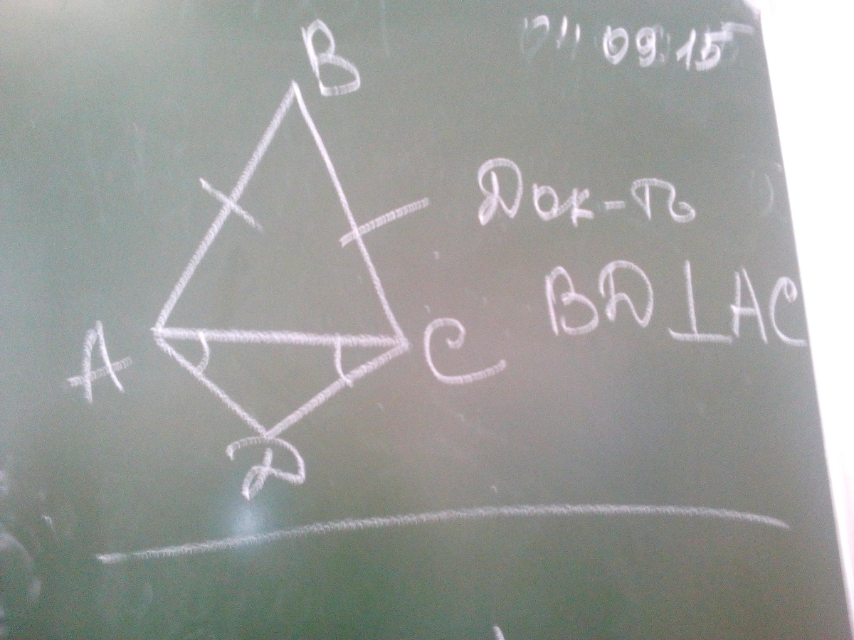 для того ,чтобы доказать что ВД перпендикулятна АС нужно доказать что фигура АВСД ромб ,т.к диогонали ромба перпендикулярны
