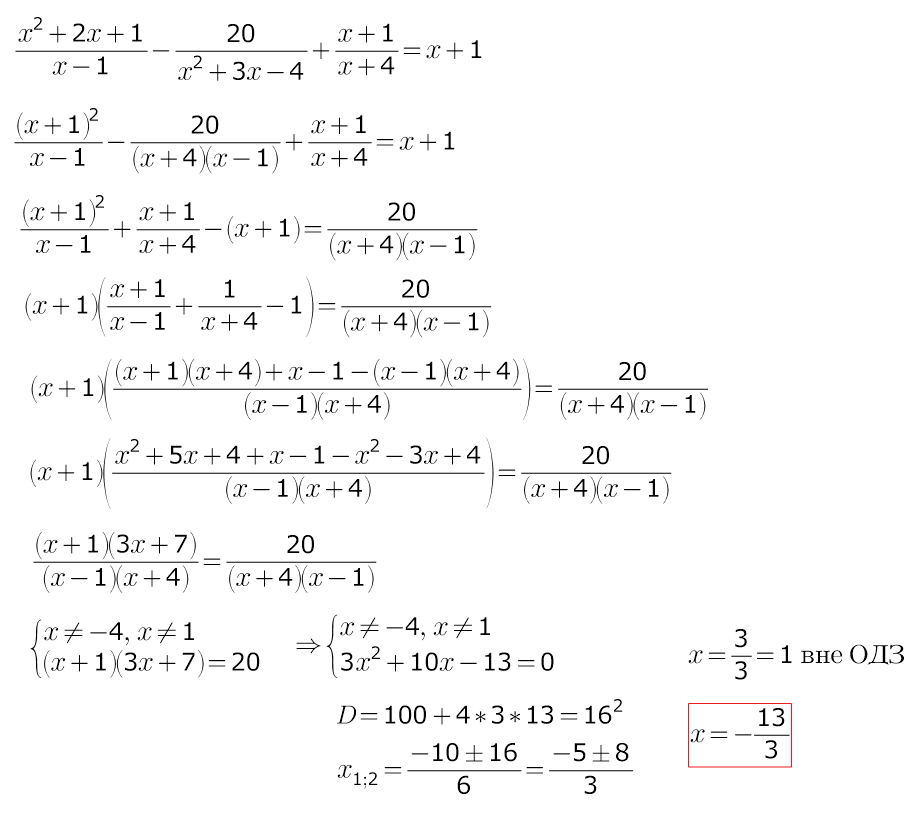(x²+2x+1)/(x-1)-20/(x+4)(x-1)+(x+1)/(x+4)=x+1