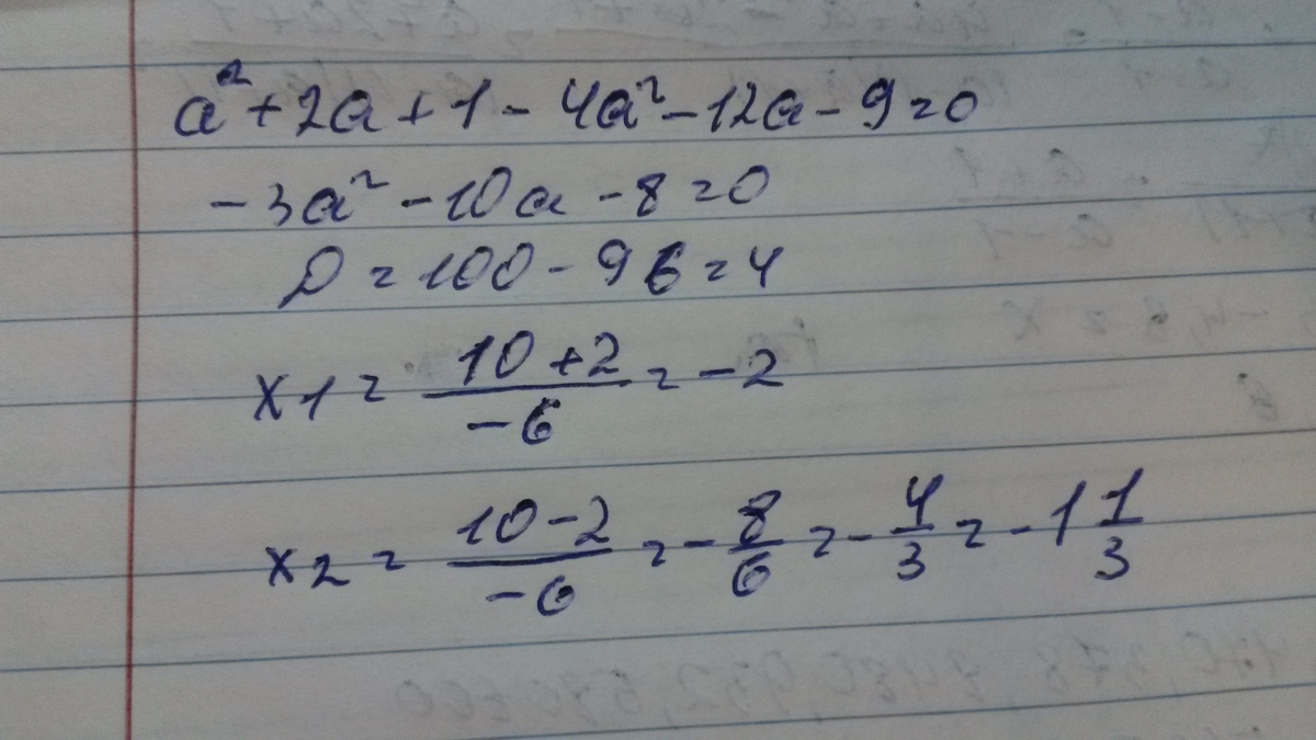а²+2а+1-4а²-12а-9=0