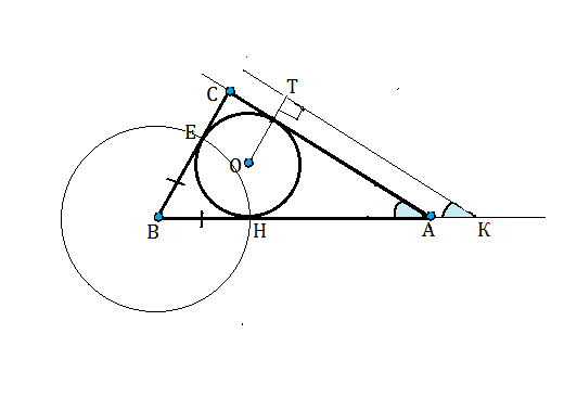 7). От А откладываем длину данной стороны. Ставим точку В. ВН по свойству касательной из одной точки равен длине отрезка от В до точки касания окружности с третьей стороной.