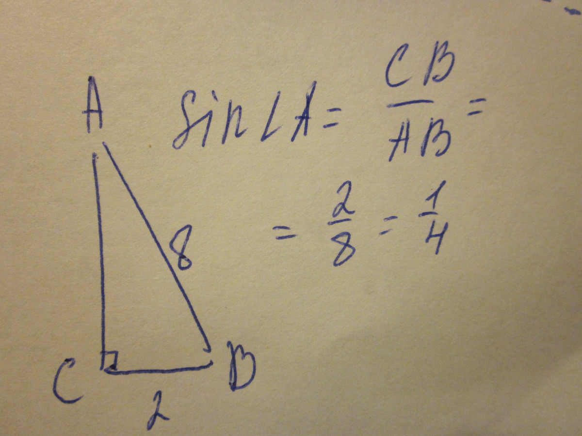 sin a=bc/ab=2/8=1/4 ////////////////////////////////////////////////////////