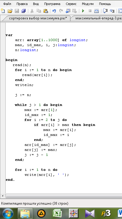 Задача "Сортировка выбором максимума" (скриншот программы в прикрепленном файле)