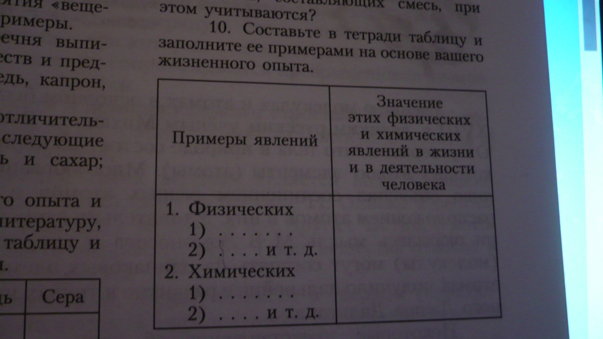 Фізичні явища: Кипіння води, Подрібнення цукру , Скисання молока , під час скисання лактоза перетворюється в молочну кислоту, використовується в харчовій промисловості.