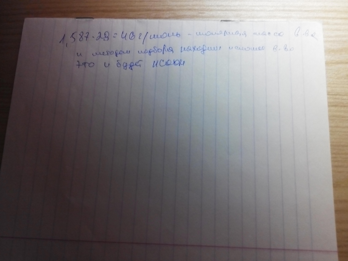 Органическое вещество имеет относительную плотность по воздуху 1,587 и содержит C. H и O. При сожжении 2,3 г этого вещества получилось 4,4 г оксида углерода (IV)и 2,7 г воды.Определите молекулярную формулу вещества. Помогите решить пожалуйста