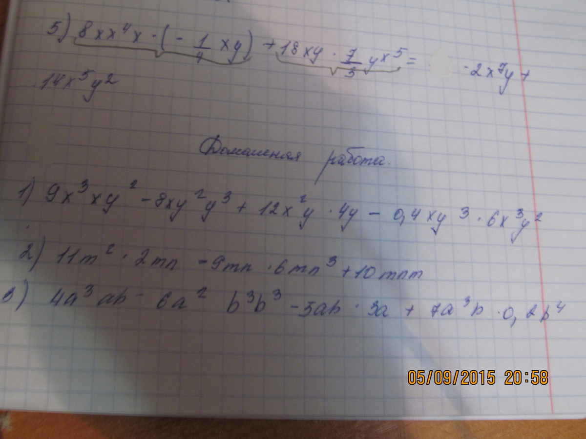 1) 9х³ хy²-8ху²у³+12х²у·4у-0,4ху³×6х³у²=9х⁴y²-8ху⁵+48х²у²-2,4х⁴у⁵
