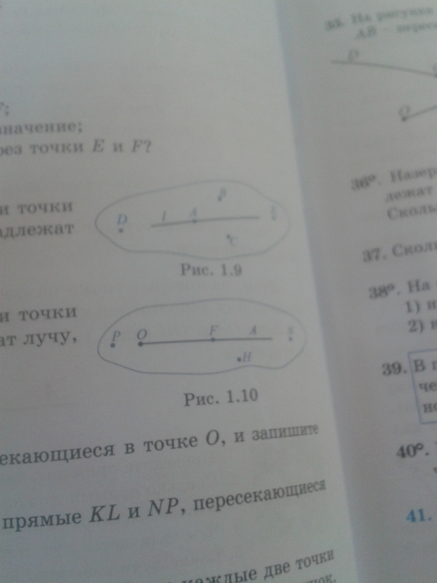 На рисунке 1.9 изображены прямая l и точки A,B,C,E и D.Какие из точек принадлежат