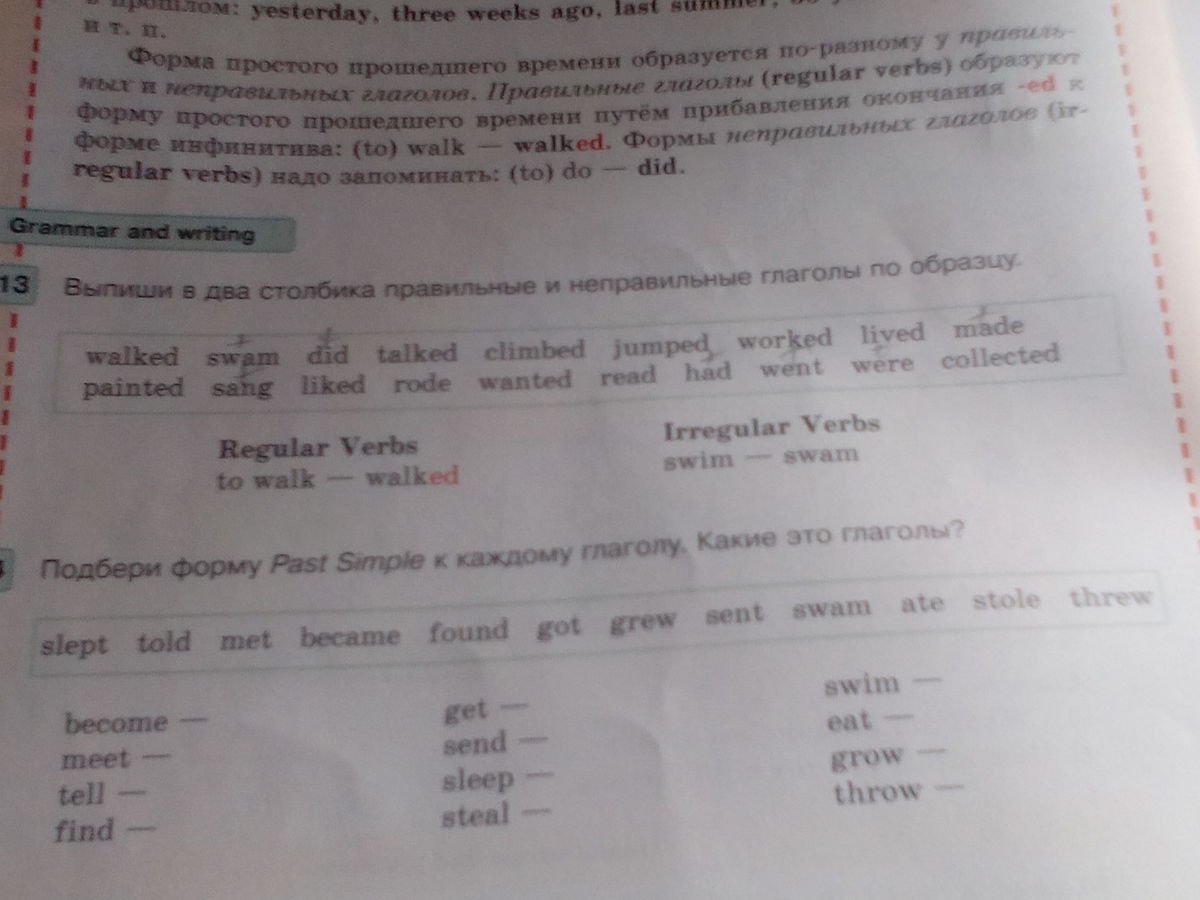 walked, talked, climbed, jumped, worked, lived, painted, liked, wanted, collected