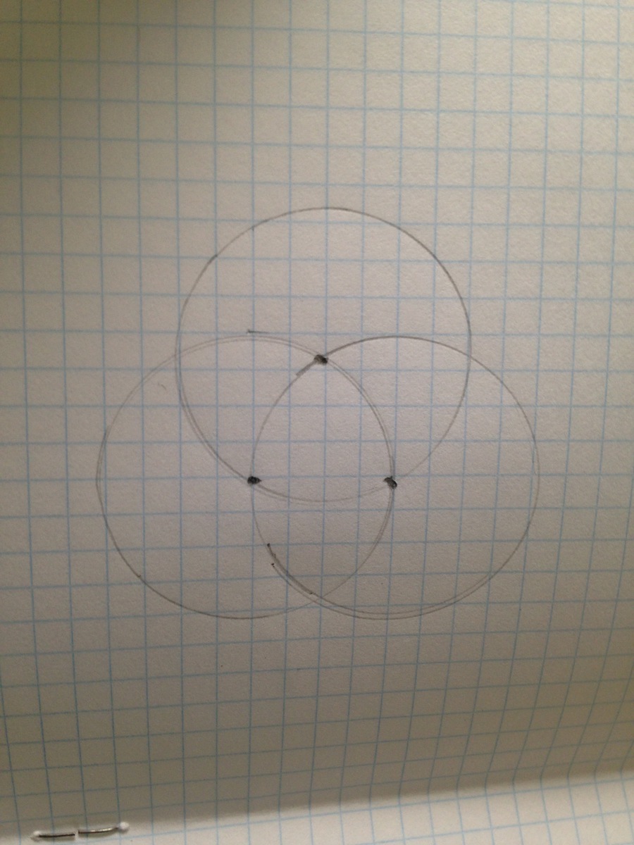 Отметьте на листе бумаги три точки так, чтобы окружность с центром в первой точке , проходящая через вторую точку, одновременно прходила бы и через третью точку