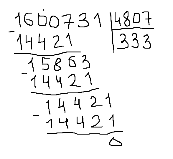 1600731:4807=333 вот так пиши