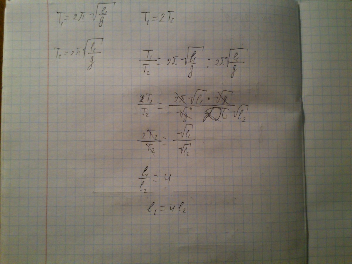 во сколько раз нужно уменьшить длину математического маятника чтобы период его колебаний уменьшился в 2 раза?