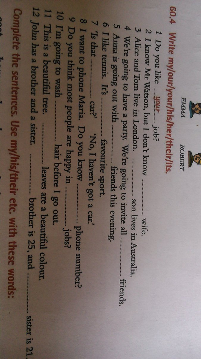 Я ничего не копировала, и в последнем я не знаю, почему ты написал his и her, когда там his и his, получился перевод: У Джона есть брат и сестра. Его брату 25 лет, а её сестре 21 год. Когда не её сестре, а его сестре, Джон же не женского рода, а мужского