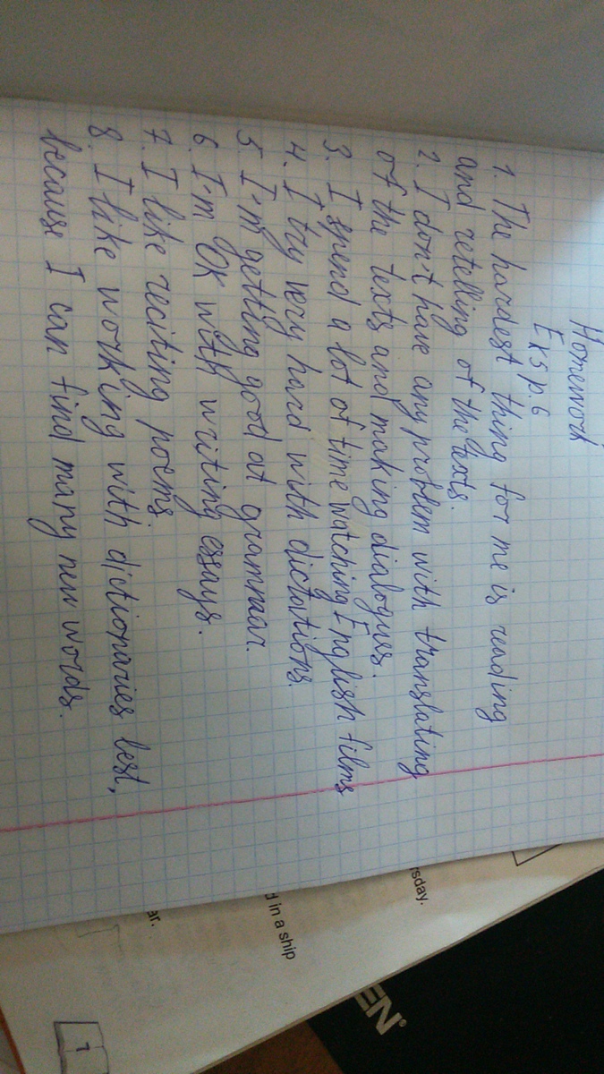 1. Самая трудная вещь для меня это читать и пересказывать тексты.