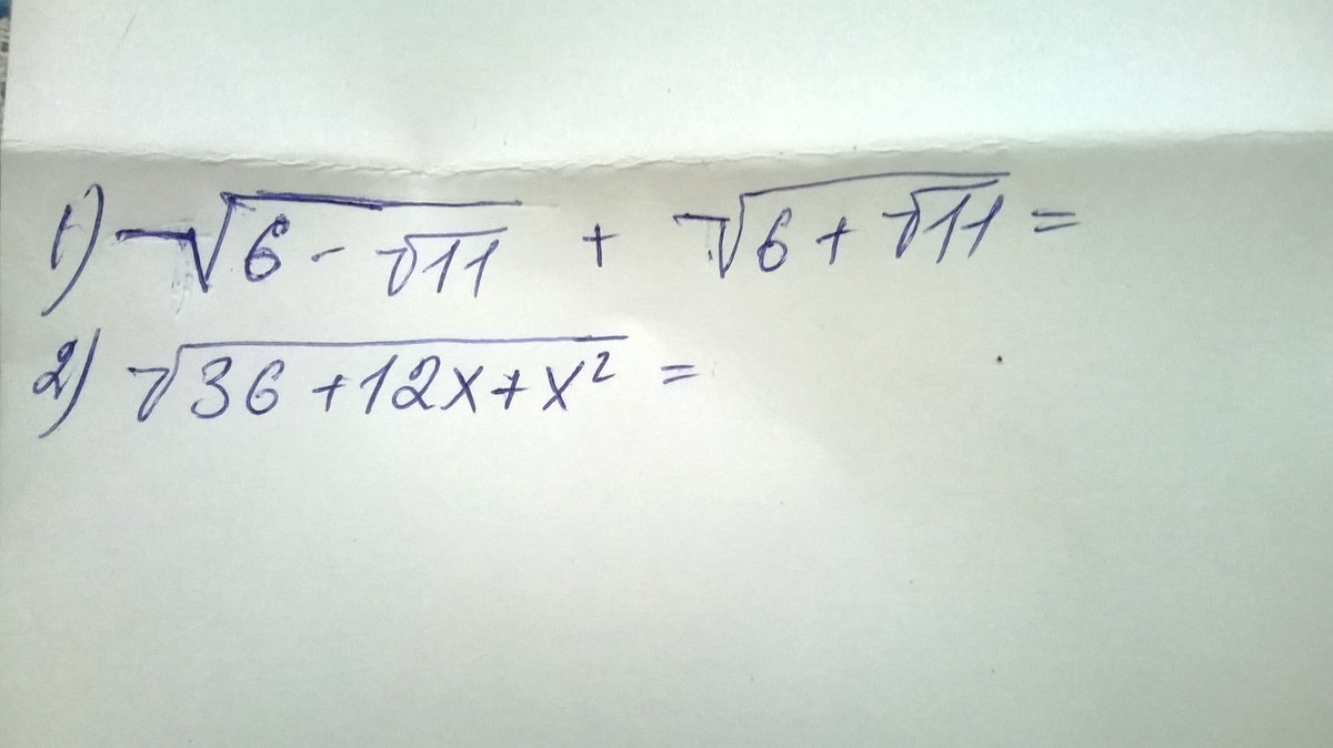 1) [√(6 - √11) + √(6 + √11)]² = [√(6 - √11)]² + 2*√(6 - √11)*(6 + √11) + [√(6 + √11)]² =