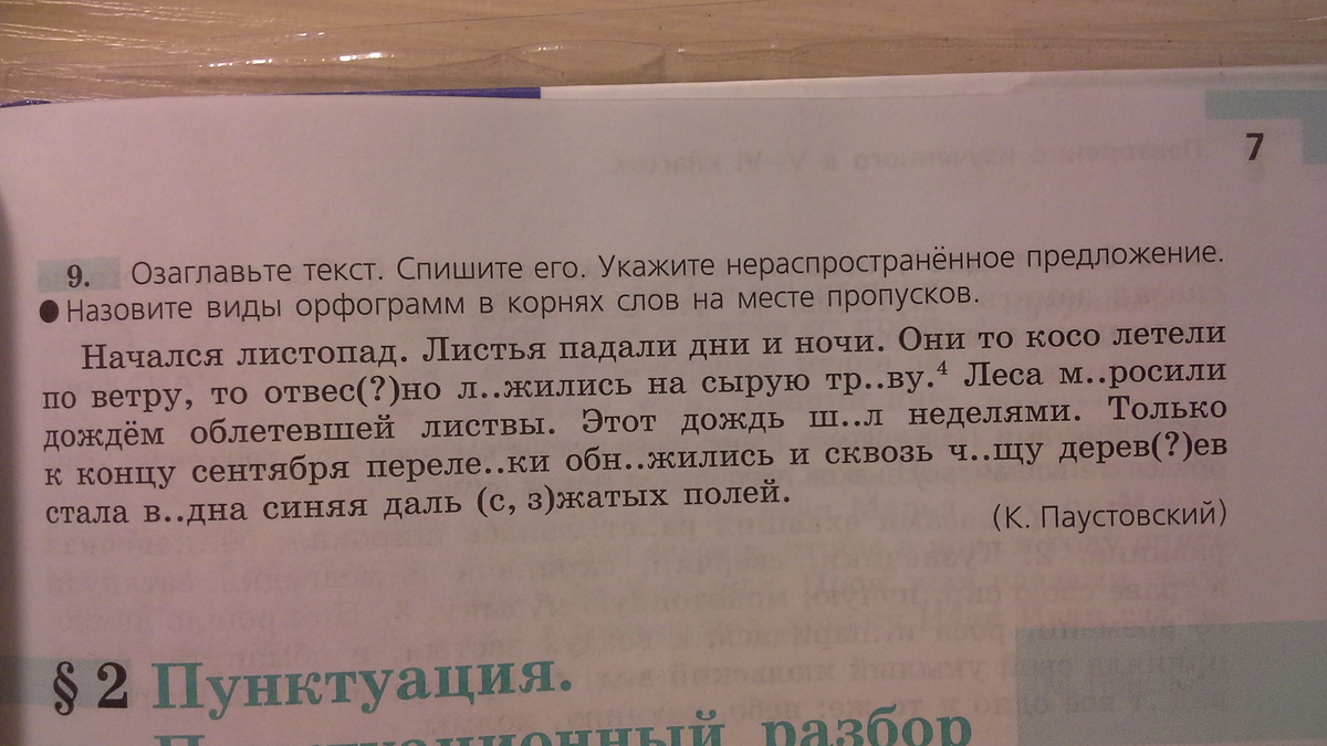 орфограммы: отвесно, ложились, траву, моросили, шёл, чащу, деревьев, видна, сжатых, перелетки, обнажились.