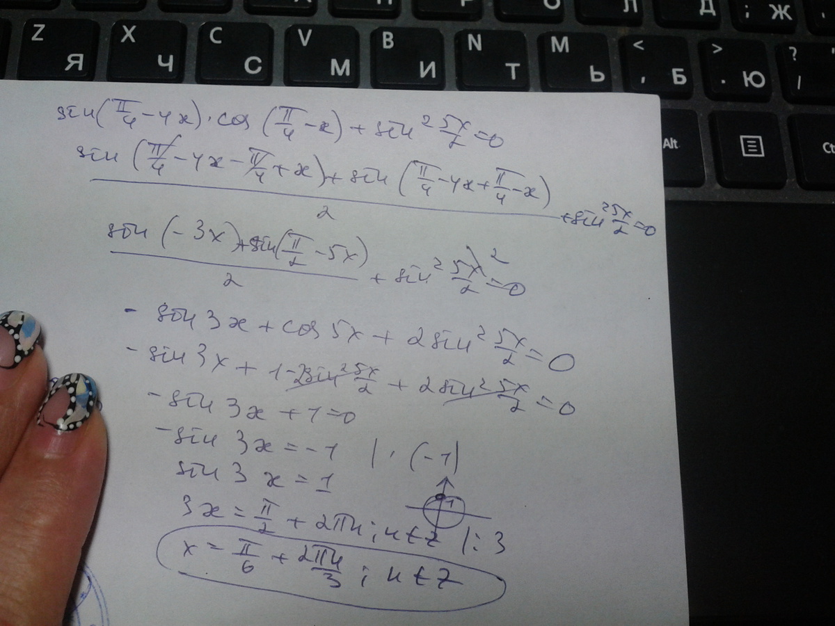 Подробно решить sin(п/4 - 4x) * cos(п/4 -x) + sin^2( 5x/2)=0