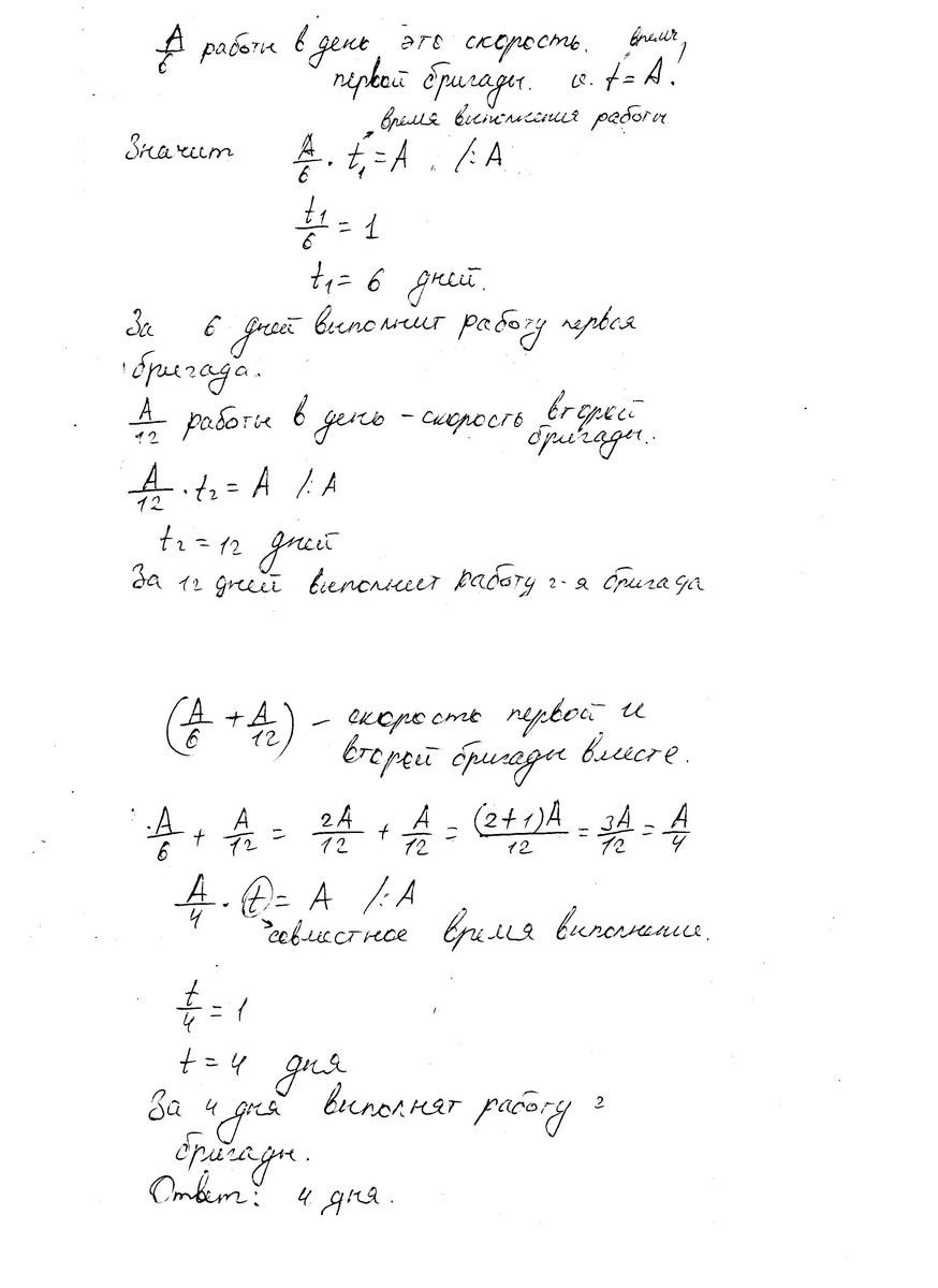 Помогите *-* Очень нужна помощь... Вот само задание : Одна бригада за день выполняет 1/6 задания, другая 1/12 задания. За сколько дней при совместной работе бригады выполнят это задание?