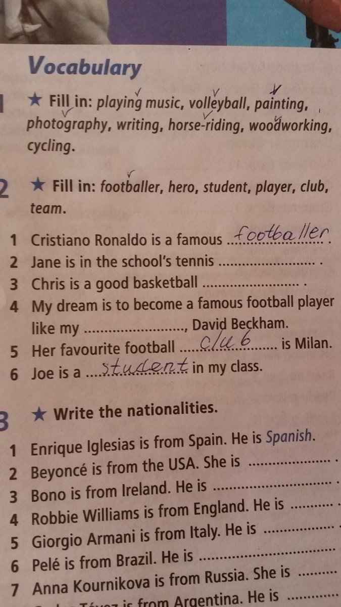 fill in : footballer , hero , student , player , club , team