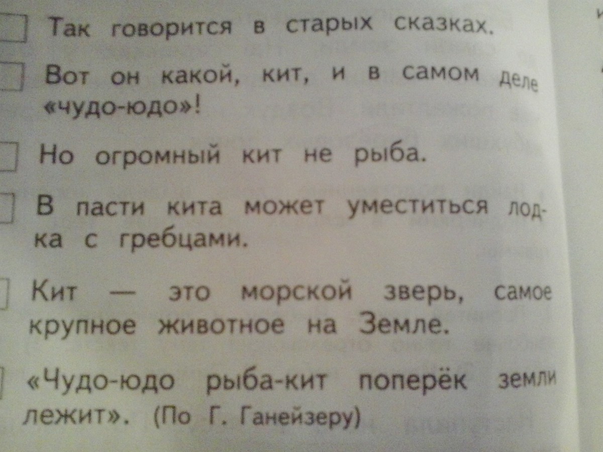 "Чудо-юдо рыба-кит поперёк земли лежит" - так говорится в старых сказках. Но огромный кит не рыба. Кит - это морской зверь, самое крупное животное на Земле. В пасти кита может уместиться лодка с гребцами. Вот он какой, кит, и в самом деле "чудо-юдо"!