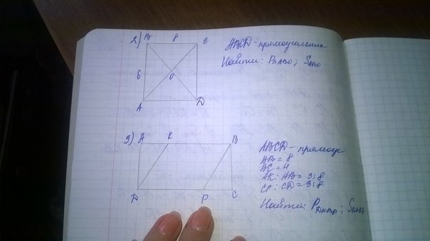 2) Прямоугольник АВСД: АВ=СД=6, ВС=АД=8