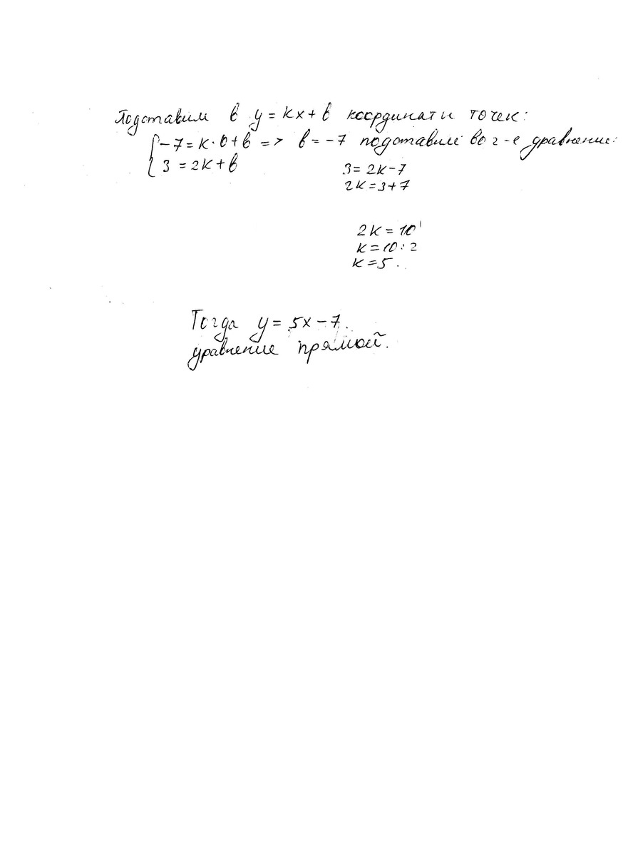 график функций y=kx+b проходит через точки A(0;-7) B (2;3). найти k и b