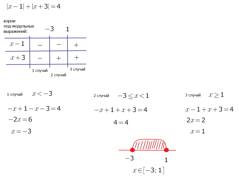 1) х∈ (-∞; -3) на этом промежутке х-1 < 0, а х+3<0, поэтому, получим уравнение --х+1 +(-х -3) =4