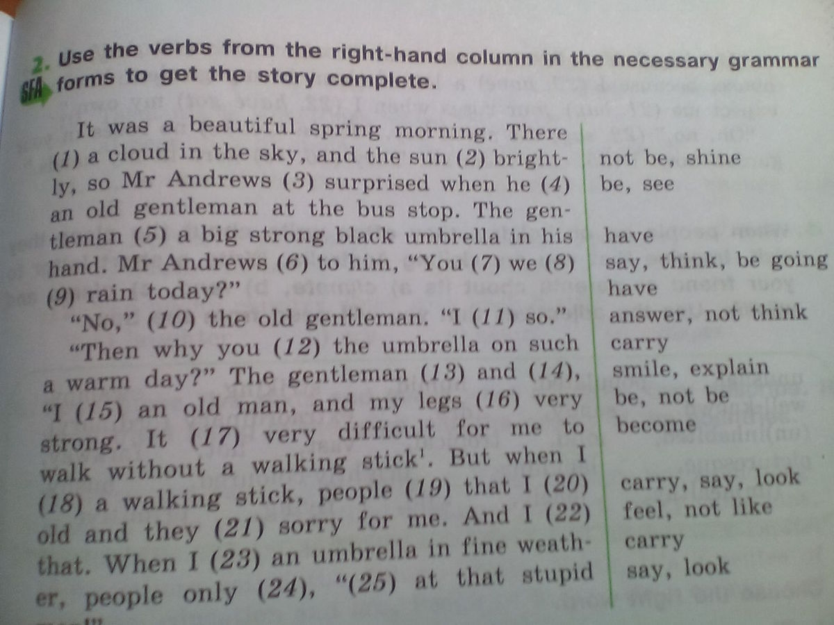 Люди! Прошу Вас! Сделайте Вы этот..английский язык.Заранее спасибо.Use the verbs from the right-hand column in the necessary grammar forms and coplete the text.