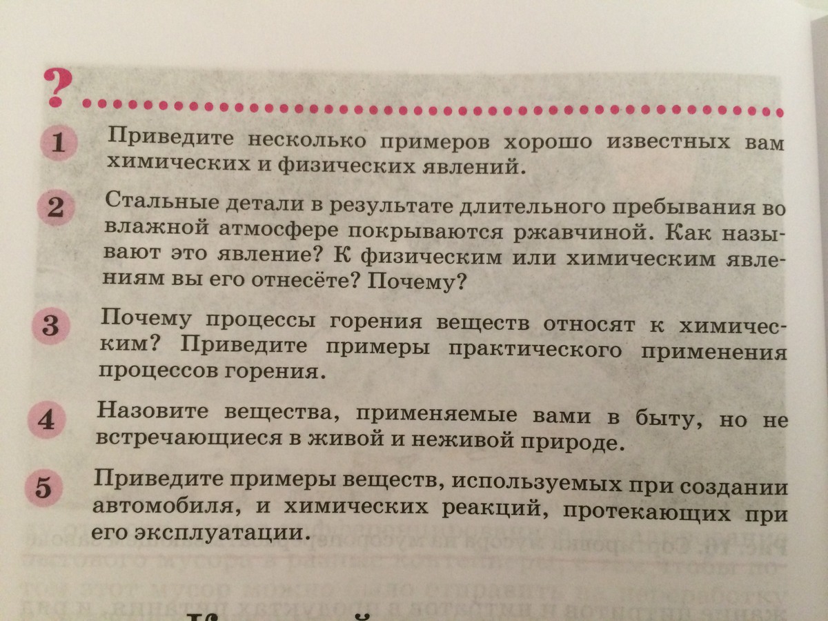 3) Горение химический процесс, т.к. при горении из одного вещества образуется другое ( изменяется запах и цвет) Пример: горение метана в газовых плитах, пища подгорает, гниение продуктов, гниение листьев.