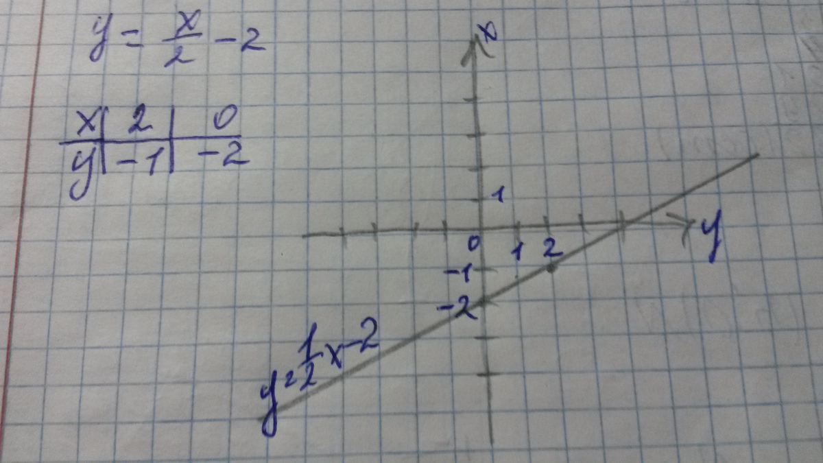 Дана функция y=1/2x-2 а)постройте ее график. б)проходит ли этот график через точку А(22;9) желательно с рисунком ((