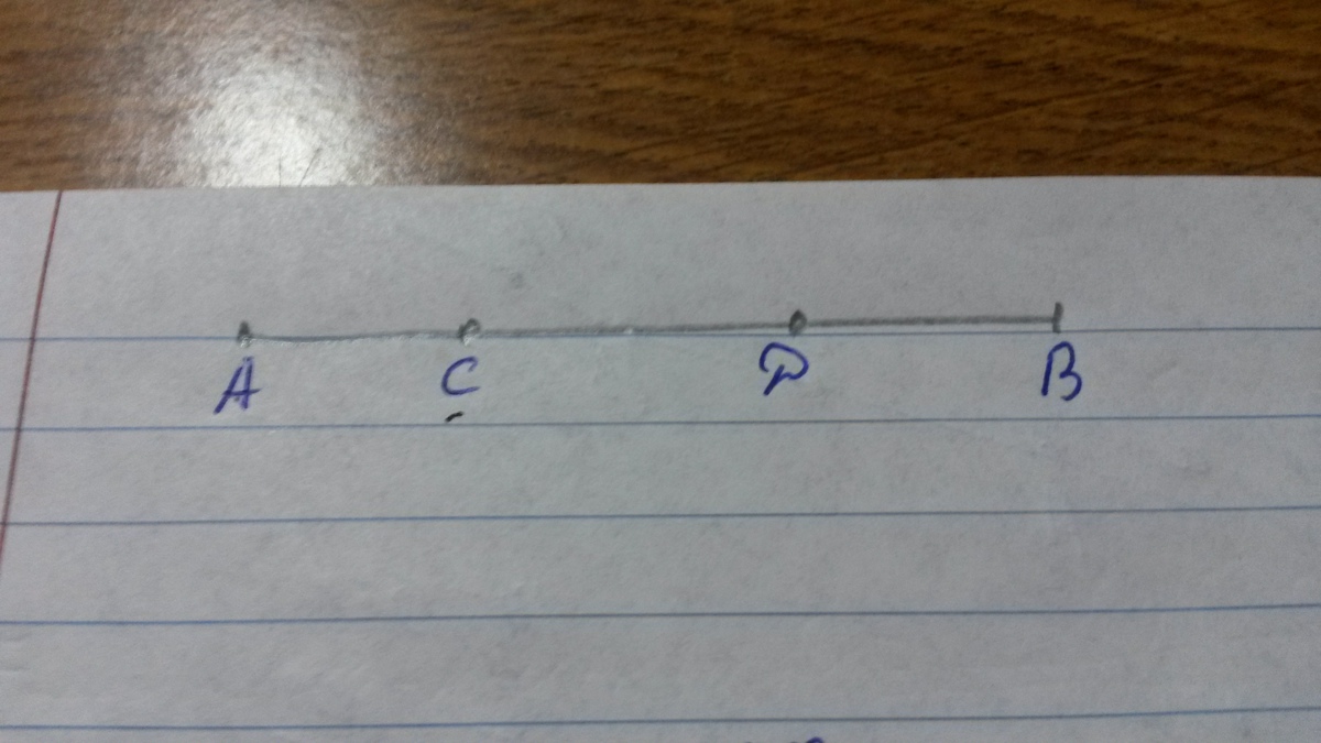 помогите пожалуйста начерчите отрезок ABотметьте точки C и Dпринадлежащие ему.На какие отрезки разбивают отрезок AB эти точки