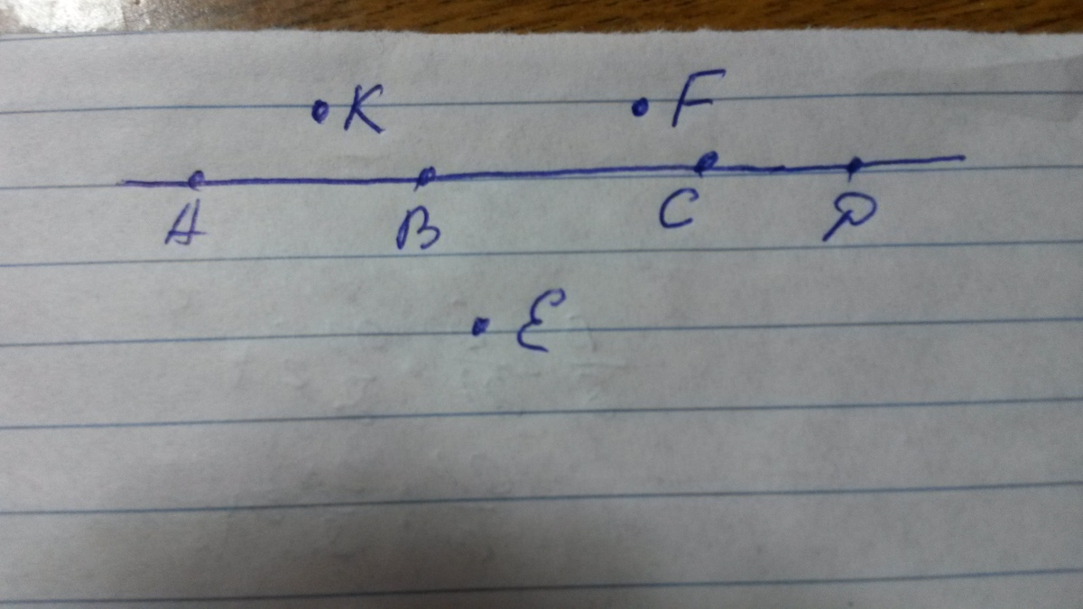 Начертите прямую и отметьте три точки не лежащие на этой прямой и четыре точки лежащие на ней обозначают точки буквами