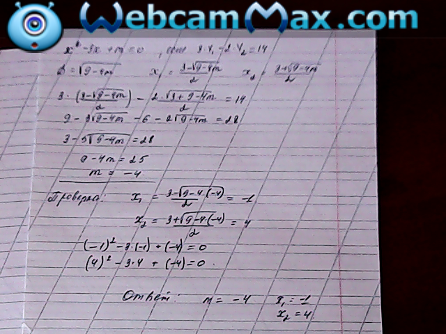 x1+x2=3 U x1*x2=m