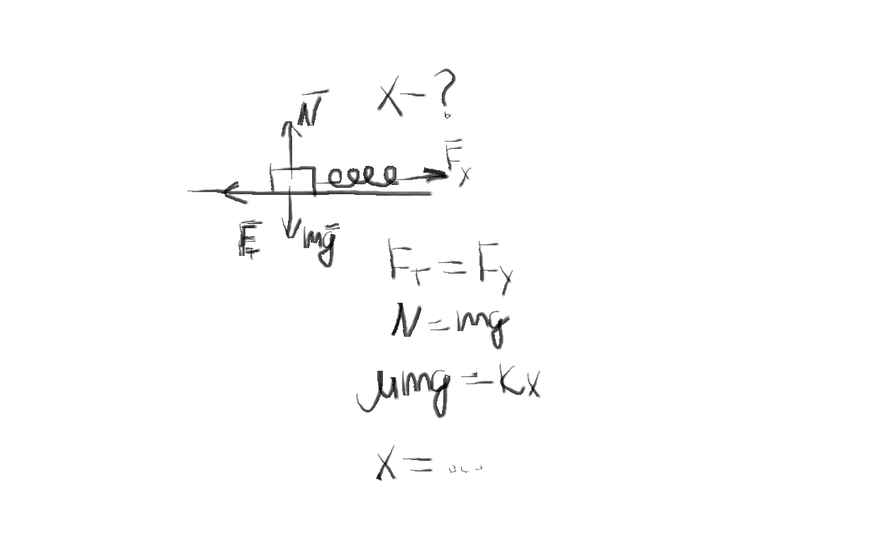 На рисунке представлены проекции сил тяжести, трения и упругости. µ - коэффициент трения.